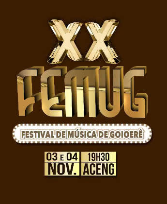 A XX Edição do FEMUG será realizada nos dias 3 e 4 de novembro a partir das 19h30 na ACENG. A XX Edição do FEMUG é uma realização da Prefeitura Municipal de Goioerê através da Secretaria de Cultura com apoio da Lei Paulo Gustavo.
