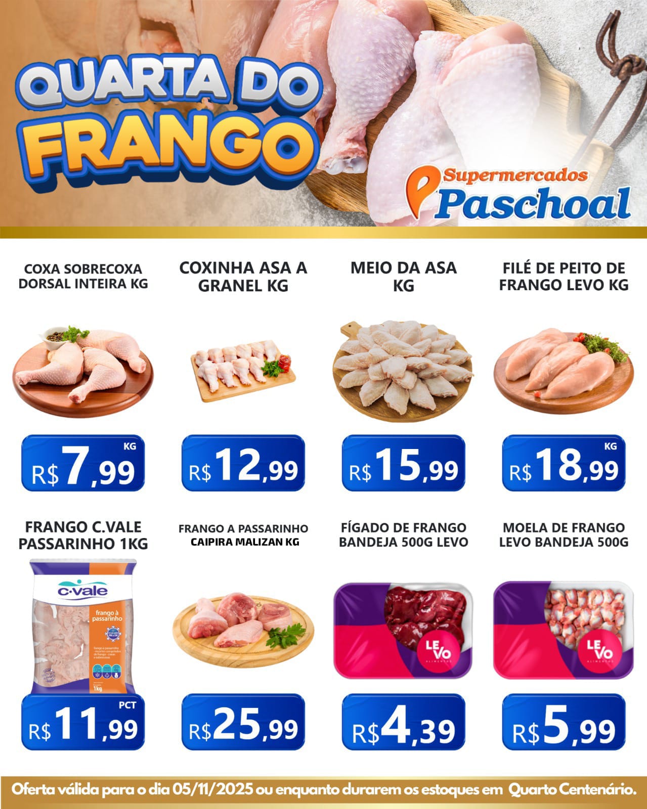 Toda quarta-feira é dia de aproveitar ótimos preços e grandes promoções em frango no Supermercado Paschoal!