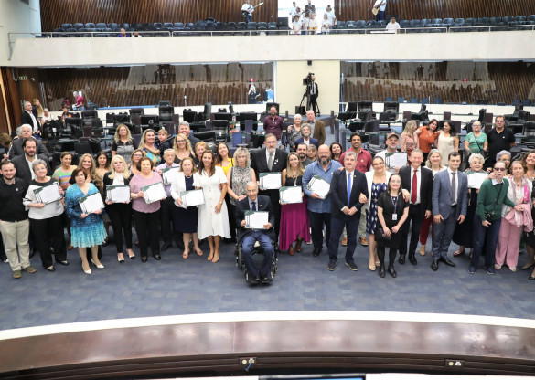 A Assembleia Legislativa do Paraná homenageou na tarde desta quarta-feira (23) uma série de personalidades que se destacam e contribuem para a causa da deficiência intelectual em todo o estado do Paraná. A sessão solene proposta pelo deputado Pedro Paulo Bazana (PSD) reuniu lideranças, presidentes de entidades, gestores, militantes da área, voluntários, pessoas com deficiência e outras personalidades que contribuem com a luta. A solenidade faz parte das comemorações em alusão à Semana Nacional da Pessoa com Deficiência Intelectual e Múltipla. Vinte e duas pessoas foram homenageadas com títulos de menção honrosa confeccionados pelo Poder Legislativo.