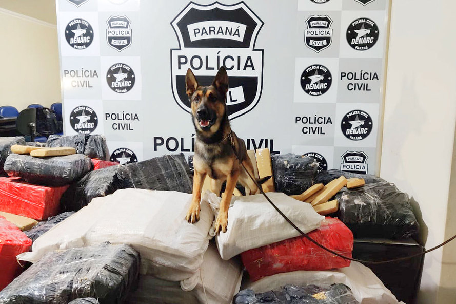 Cães da Polícia Civil do Paraná (PCPR) auxiliaram na apreensão de 2,577 toneladas de drogas nos primeiros cinco meses de 2020, volume superior à soma das apreensões com atuação dos animais em 2018 e 2019, quando foram interceptados apenas 2,3 quilos e 2,552 toneladas, respectivamente. O total nos últimos dois anos inteiros foi de 2,554 toneladas, ou seja, 22,9 quilos menos que de janeiro a maio deste ano.
