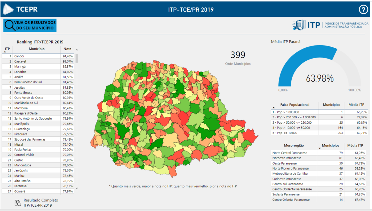 Os quesitos adotados atenderam ao disposto na Resolução nº 9/2018 da Associação dos Membros dos Tribunais de Contas do Brasil (Atricon), indo além desta norma, com alguns itens conferidos exclusivamente pelo TCE-PR. O ITP será utilizado para o ranking nacional da entidade e, a partir deste ano, deve também fundamentar a avaliação dos portais da transparência das câmaras municipais e dos demais poderes na esfera estadual.