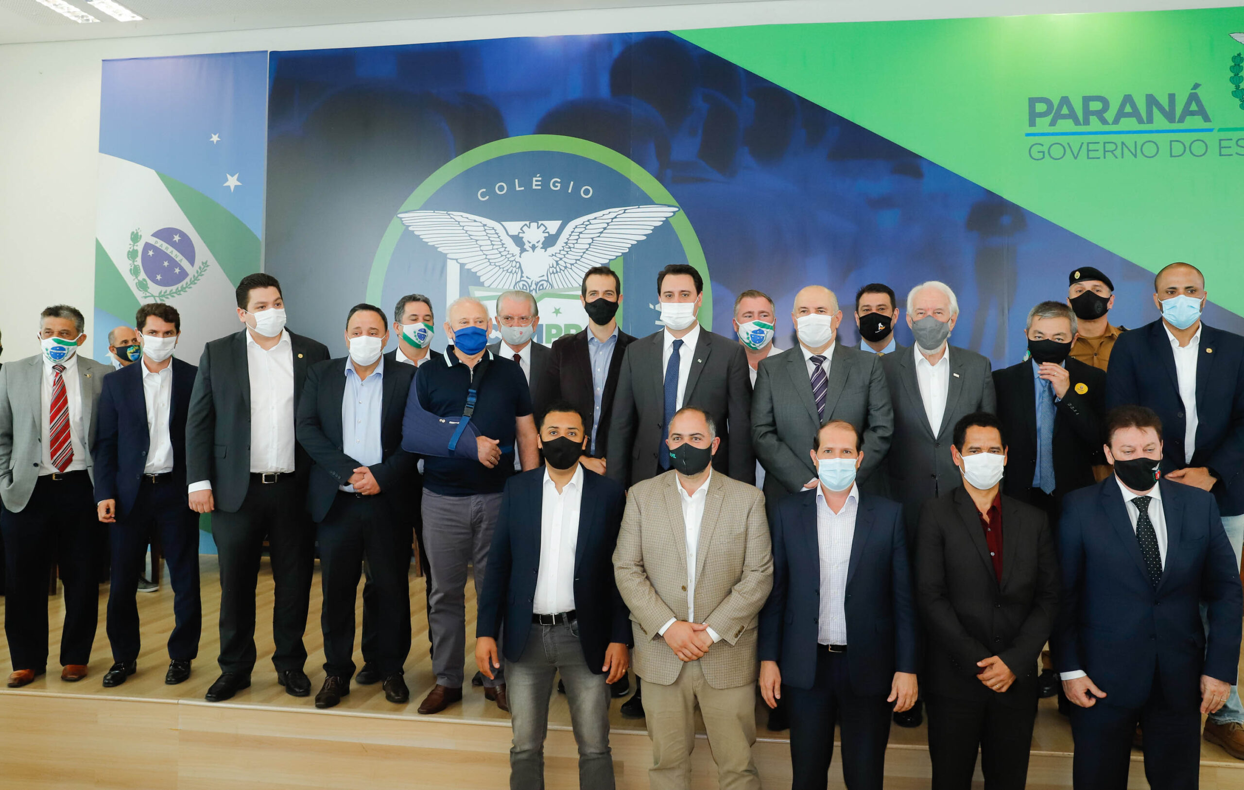 PRESENÇAS – Participaram do evento o vice-governador Darci Piana; os secretários Guto Silva (Casa Civil), Marcel Micheletto (Administração e Previdência), Márcio Nunes (Desenvolvimento Sustentável e Turismo) e João Debiasi (Comunicação e Cultura); o diretor-geral da Secretaria de Educação, Gláucio Dias; o chefe da Casa Militar, tenente-coronel Welby Pereira Sales; o comandante da Defesa Civil do Paraná, tenente-coronel Fernando Schunig; os deputados federais Aline Sleutjes, Toninho Wandscheer, Schiavinato, Vermelho, Sargento Fahrur e Luizão; os deputados estaduais Ademar Traiano, presidente da Assembleia Legislativa, Hussein Braki, líder do Governo, Alexandre Curi, Luiz Claudio Romanelli, Galo, Do Carmo, Nelson Justus, Alexandre Amaro, Coronel Lee, Artagão Júnior, Soldado Adriano José, Nelson Luersen, Emerson Bacil, Gilson de Souza e Gugu Bueno; e o presidente da Associação dos Municípios do Paraná (AMP), Darlan Scalco.