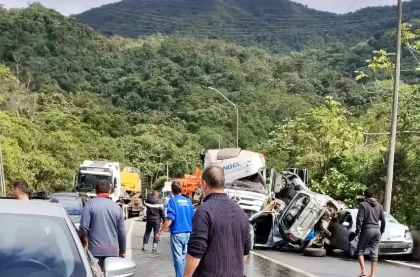 Um vídeo gravado pelo sistema de monitoramento da concessionária Arteris Litoral Sul mostra o momento em que uma carreta atinge 14 veículos, na BR-376, em Guaratuba, no litoral do Paraná. O acidente foi registrado no fim da manhã deste domingo (2) na altura do quilômetro 666, no sentido Santa Catarina. Seis pessoas ficaram feridas.