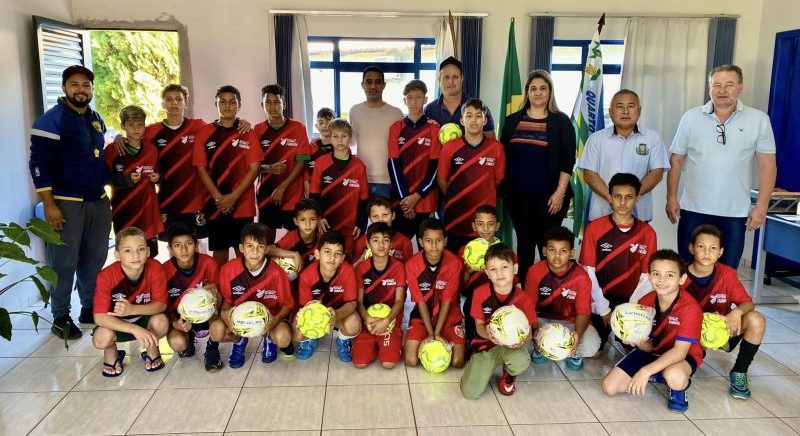 Dentro do Projeto firmado pelo prefeito Akio Abe com o Athetico Paranaense que possibilitou a instalação no município de Quarto Centenário da Escolinha Furacão, na manhã da ultima segunda-feira, 29, foi realizada a entrega dos materiais esportivos do Governo do Paraná e uniformes oficial do Clube Athetico Paranaense, onde o Município de Quarto Centenário passa a fazer parte do Projeto denominado “Escolinha Furacão”, que tem como objetivo atender crianças e adolescentes para integrar a “Escolinha Furacão” que visa descobrir talentos para o futebol que serão aproveitados na Escolinha do Athetico Paranaense, em Curitiba.
