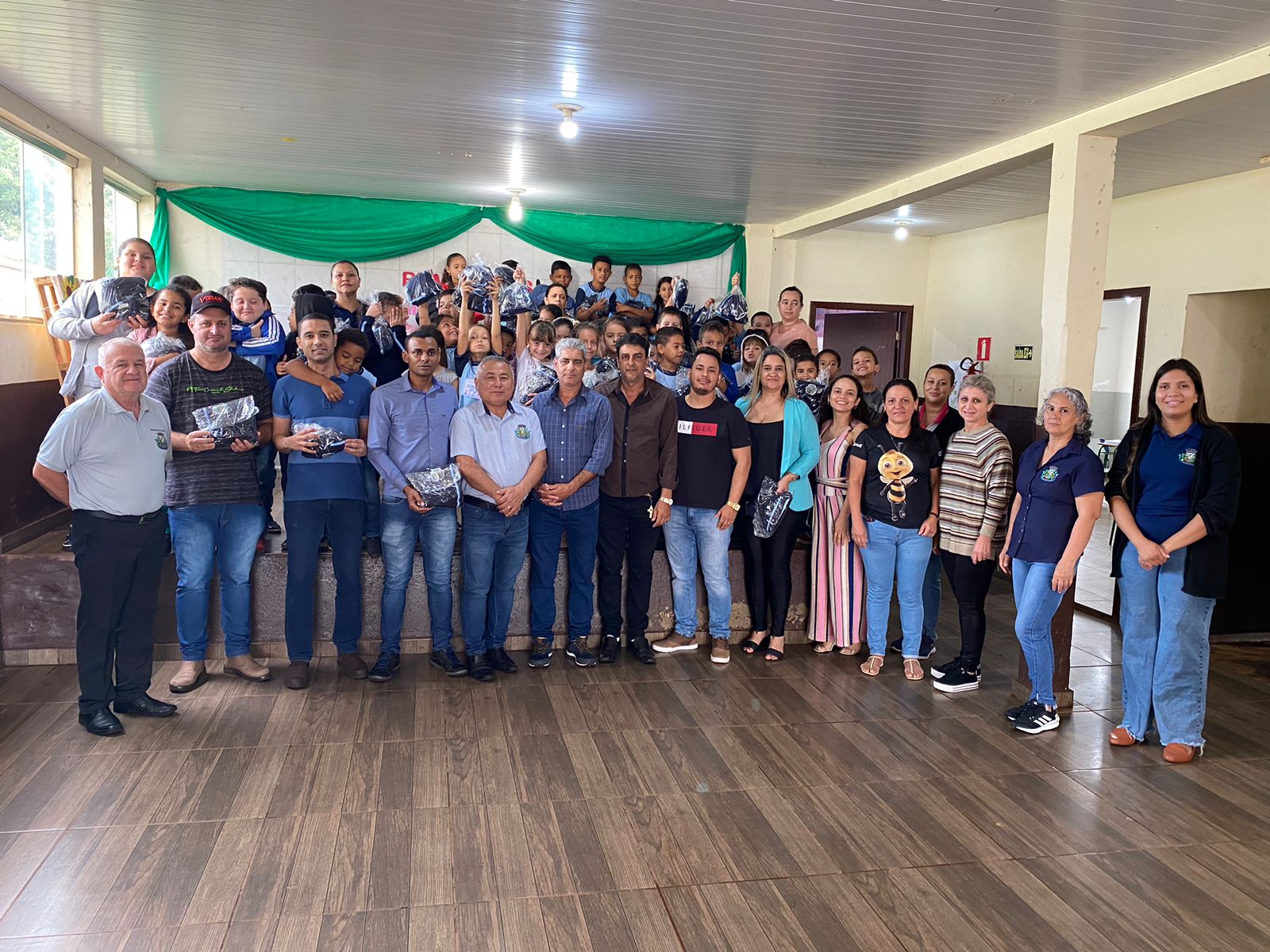 A entrega foi feita nas Escolas Municipais Germana Afonso Moleiro e Presidente Castelo Branco (Bandeirantes do Oeste) e nos Cmeis de Quarto Centenário e também em Bandeirantes do Oeste