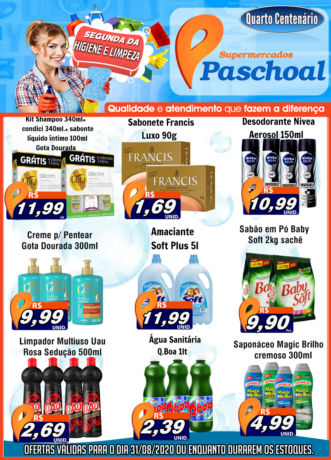 No Supermercados Paschoal a semana começa com economia. E para esta segunda-feira, 31 o Supermercado Paschoal preparou grandes ofertas para a higiene e limpeza.