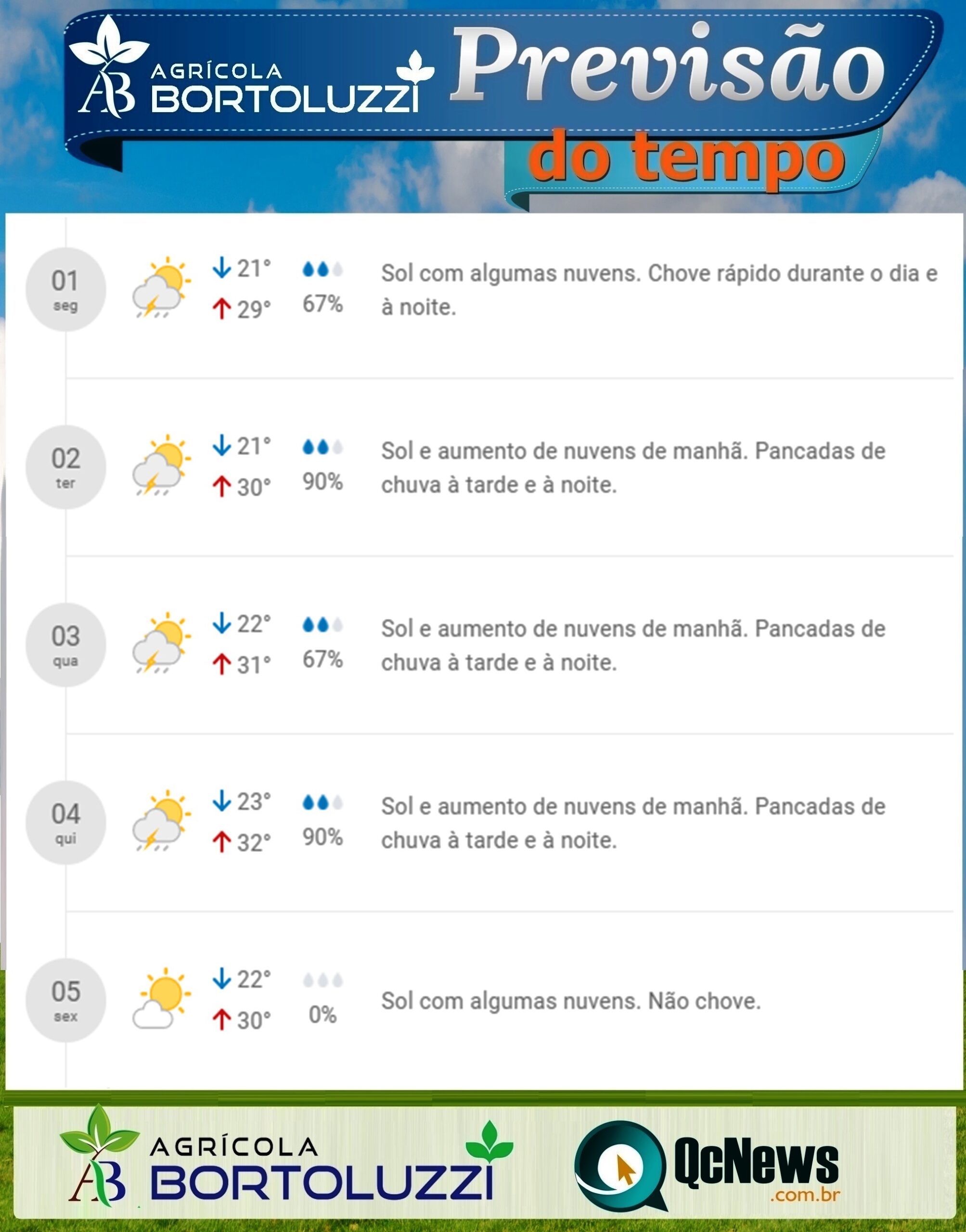Segundo os meteorologistas, ainda deve ter chuva em todo o Paraná durante a primeira semana de Fevereiro. a Minima está prevista para 21ºC. e máxima e 32ºc.