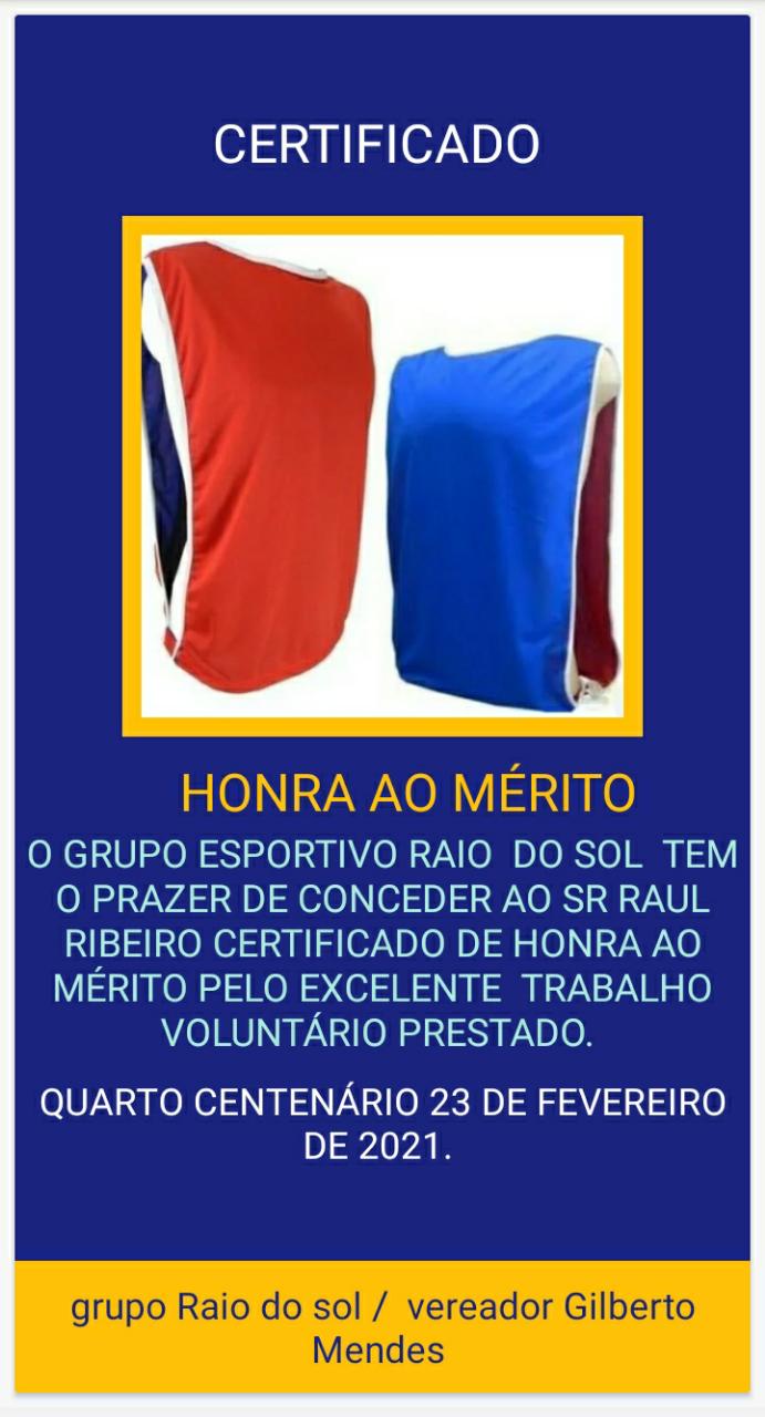 Gilberto também aproveitou o momento e fez uma Homenagem ao Sr. Raul Ribeiro, entregando um certificado de Honra ao Mérito pelo trabalho voluntário desenvolvido no município de Quarto Centenário