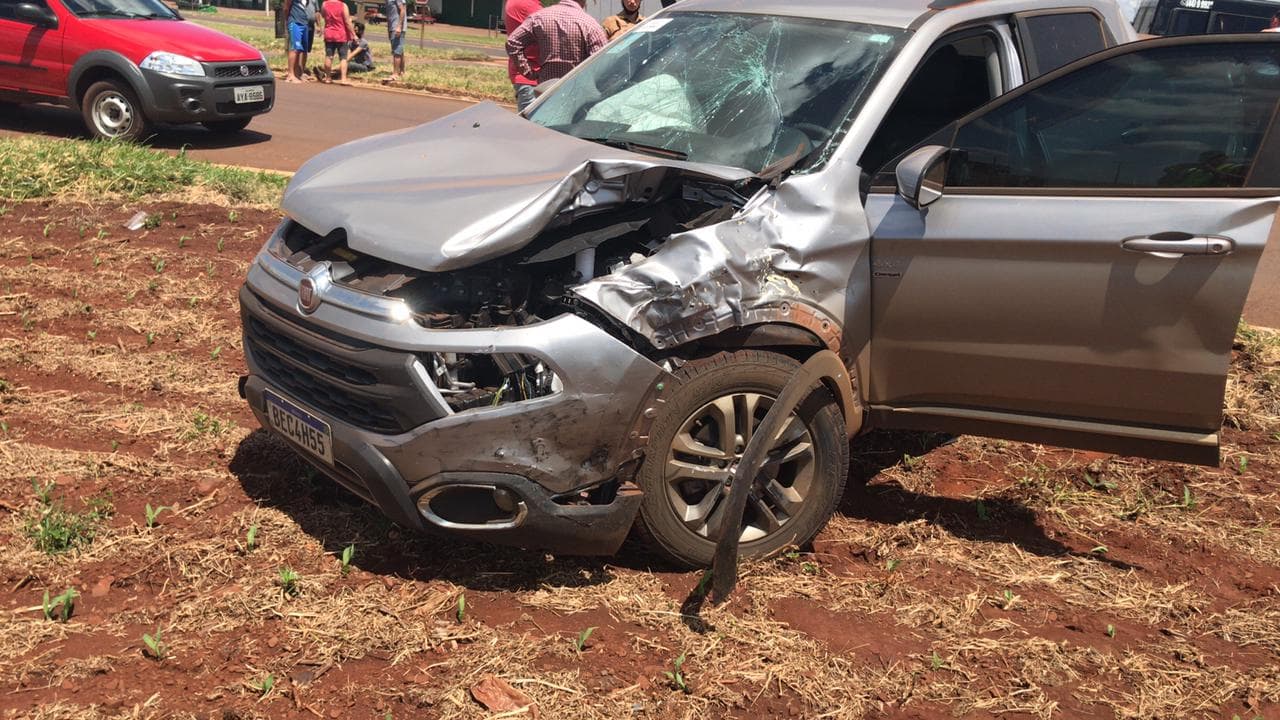 Um veículo Fiat Toro provocou um acidente no inicio da tarde deste domingo (28), na BR 369, ao atravessar o trevo que dá acesso ao município de Juranda.