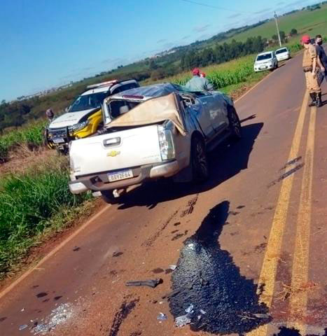 Uma Camioneta S-10 com placa de Moreira Sales, capotou na rodovia PR 180, perto da curva da ponte do rio Água Branca entre Goioerê e Moreira Sales.