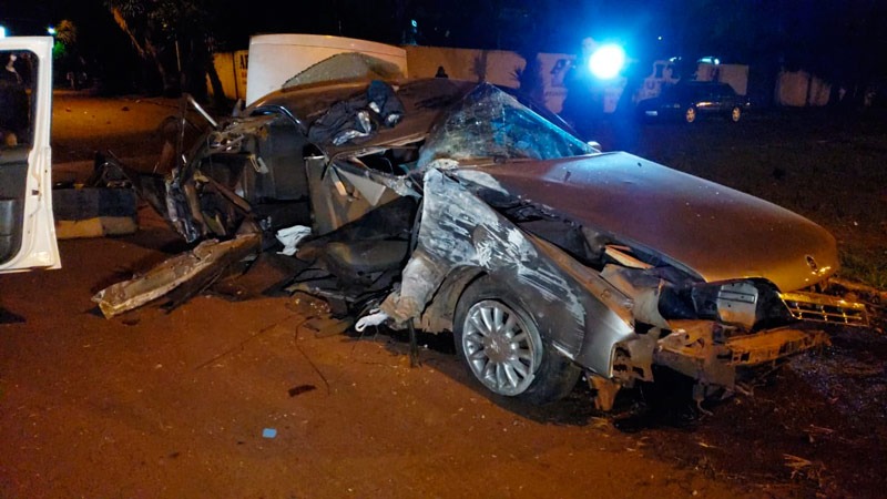 Na altura da rotatória do aeroporto municipal, o motorista, de 32 anos, perdeu o controle da direção, bateu num poste e capotou. Apesar do veículo ficar completamente destruído, o condutor não se machucou e tentou fugir pelo teto do carro, mas foi detido.