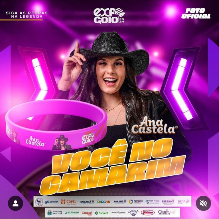 A comissão organizadora da ExpoGoio está realizando a promoção “VOCÊ NO CAMARIM DA ANA CASTELA”. Para concorrer, basta adquirir o ingresso para o show da Ana Castela e seguir os passos abaixo: