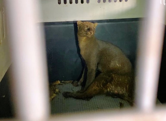 Técnicos do escritório regional do Instituto Água e Terra em Umuarama resgataram nessa quarta-feira (9) um Gato-mourisco em propriedade rural na região de Mariluz, noroeste do Estado. O animal estava machucado e foi encaminhado ao Zoológico de Cascavel para avaliação médica.