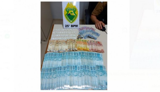 Um homem de 38 anos foi preso na noite desta quinta-feira (16) acusado de tráfico de drogas. Com eles foram encontrados cocaína e R$ 8,3 mil, de acordo com o 25º Batalhão de Polícia Militar (25º BPM).