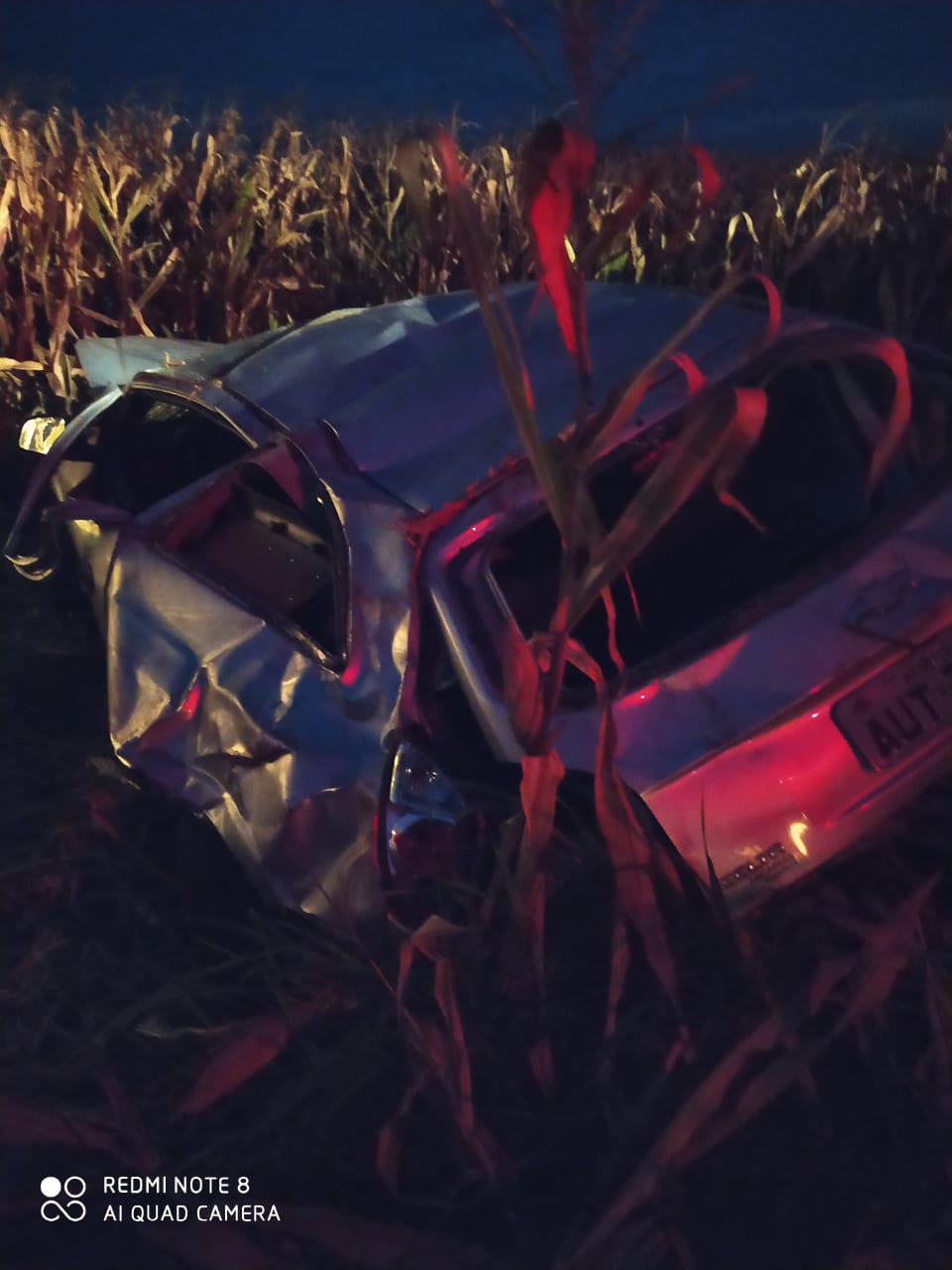 O carro só parou em uma plantação de milho e ficou completamente destruído. Socorristas do Samu e da Defesa Civil foram acionados, mas apenas constataram a morte de Vitória Fabris.