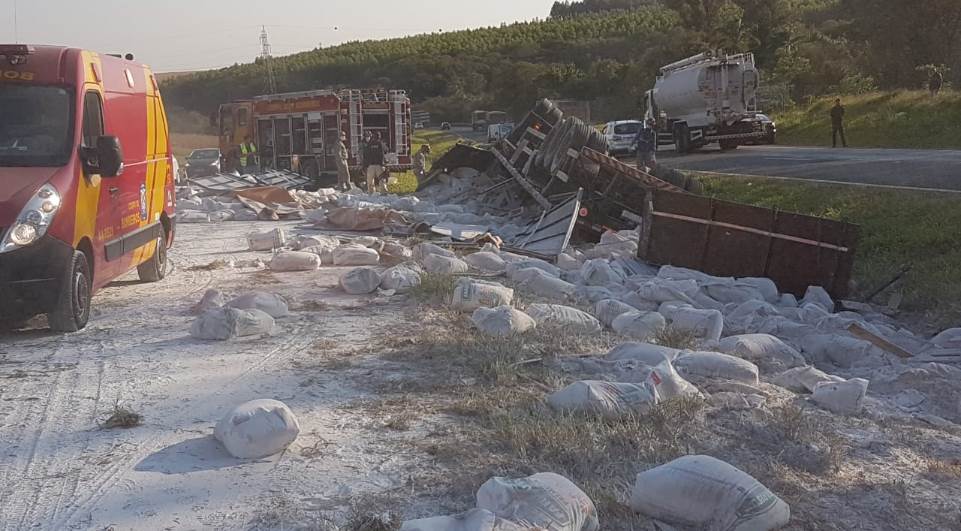 Segundo informações, a carreta carregada com sacos de farinha de trigo, trafegava na rodovia no sentido Cascavel/Toledo. Logo após passar um pesque e pague da região, o motorista perdeu o controle da direção, saiu da pista e capotou no canteiro central.  O veículo parou com as rodas para cima e a carga ficou espalhada pela rodovia.