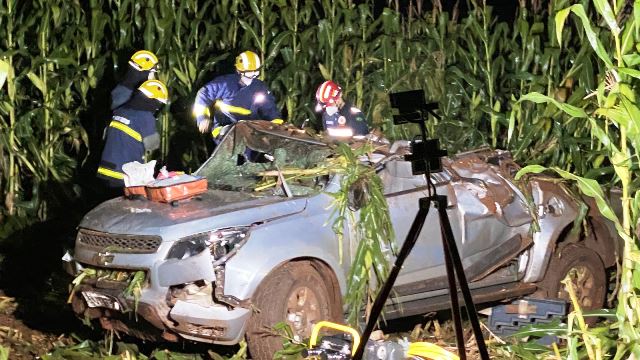 Segundo informações de pessoas que estavam no local, a camioneta saiu da pista após a curva que existe antes da ponte do Rio Caracol e entrou em uma lavoura de milho, onde capotou.