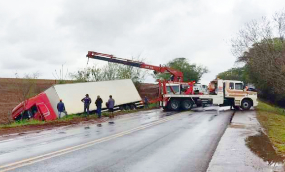 O bloqueio parcial ocorreu no km 87, próximo à ponte sobre o Rio Piquiri, para remoção de um caminhão baú que saiu da pista e caiu num barranco, no sábado (2).