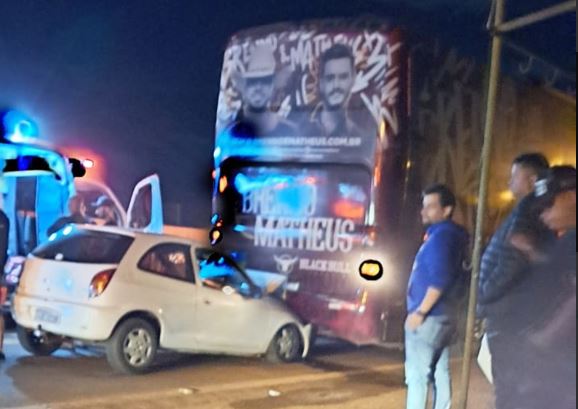 O ônibus, pertencente à dupla sertaneja Brenno & Matheus, foi atingido na traseira pelo Celta, quando o motorista fazia uma manobra em marcha a ré, pela na avenida Vereador Aparecido da Cunha, uma via paralela com a rodovia PR-317, perímetro urbano do distrito de Ivailândia.