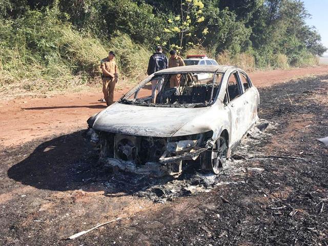 Veículo de pais de criança abandonada em Goioerê é encontrado incendiado em Moreira Sales